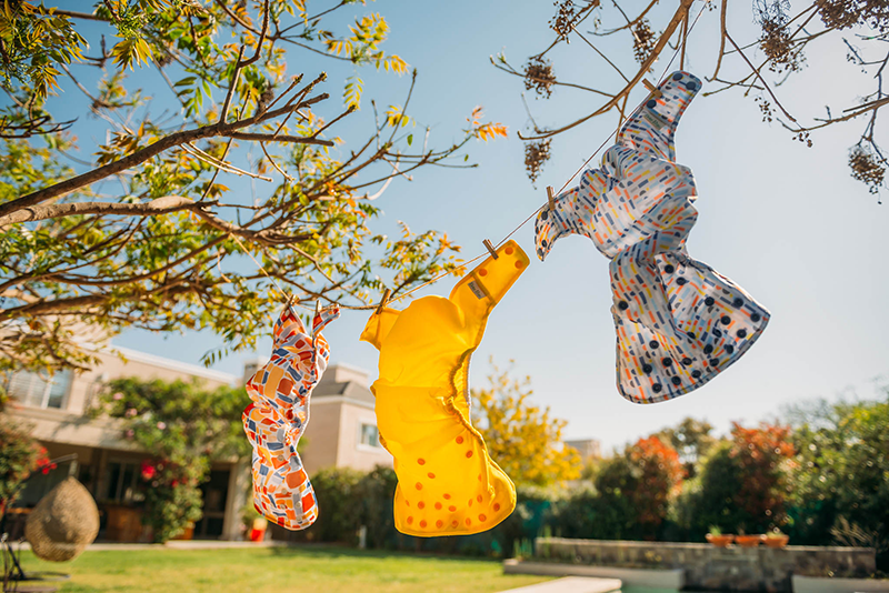 El mejor aliado para los absorbentes es el sol: además de secar, elimina manchas y bacterias naturalmente. Si secás adentro, hacelo en un lugar ventilado. Podés usar secarropas en modo suave para los absorbentes, pero no se recomienda para el pañal.